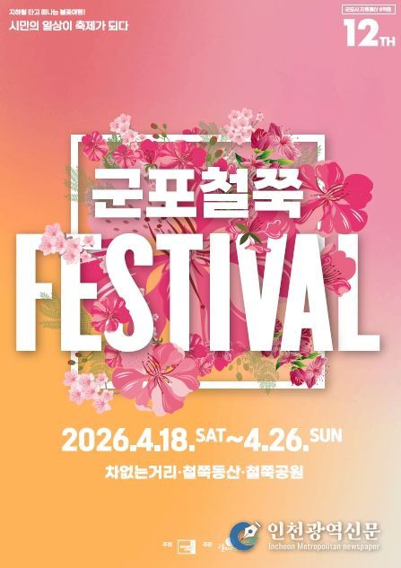 [인천광역신문] 관리자 기자 | 군포시가 봄을 대표하는 꽃 축제인 ‘제12회 군포철쭉축제’를 오는 4월 18일부터 26일까지 9일간 철쭉동산과 철쭉공원 일원에서 개최한다고 밝혔다.