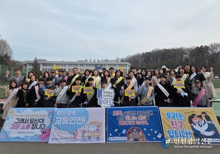 [인천광역신문] 관리자 기자 | 진천교육지원청은 3월 25일과 3월 27일 이틀에 걸쳐 2026. 상반기 학교폭력예방 및 교통안전 유관기관 합동캠페인과 야간순찰을 실시했다.