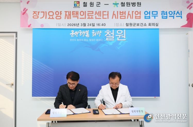 철원군은 3월 24일 오후 철원군보건소 회의실에서 철원병원과 장기요양 재택의료센터 시범사업 업무협약을 체결했다. 이번 협약은 병원을 찾기 어려운 주민들이 가정에서도 필요한 진료와 건강관리를 받을 수 있도록 지원하기 위해 마련됐다.