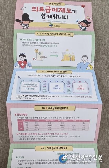 [인천광역신문] 관리자 기자 | 의정부시는 의료급여 제도에 대한 이해를 돕고 적정 이용을 유도하기 위해 6단 병풍접지 형식의 홍보지를 제작했다고 25일 밝혔다.