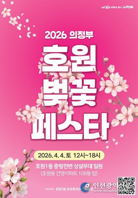 [인천광역신문] 관리자 기자 | 의정부시 호원1동주민센터는 4월 4일 낮 12시부터 오후 6시까지 호원1동 중랑천변 상설무대 일원에서 ‘2026 의정부 호원 벚꽃 페스타’를 개최한다.