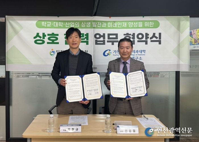 [인천광역신문] 관리자 기자 | 인천광역시교육청은 24일 가천대학교 의과대학 가천통증연구소(소장 박철규)와 학교·대학·산업의 상생 발전 및 미래 인재 양성을 위한 업무협약을 체결했다.