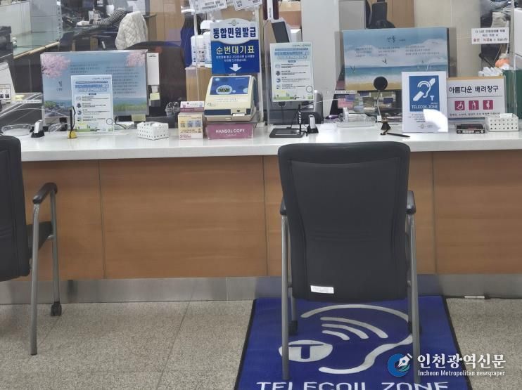 민원 창구에 설치된 장치를 통해 직원의 음성이 자기장 신호로 변환되어 보청기 수신기(T코일)를 통해 직접 전달된다.