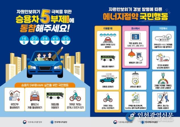 정부가 주도하는 공공기관 승용차 5부제는 이날부터 의무 시행된다. 중앙정부와 지방자치단체, 정부 산하 공공기관, 지자체 공공기관, 국공립대, 국립병원, 시도교육청 등이 대상이다.