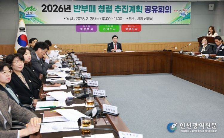 [인천광역신문] 관리자 기자 | 충남 계룡시는 25일 상황실에서 기관장을 비롯한 간부 공무원들이 참석한 가운데 ‘2026년 반부패·청렴 추진계획 공유 회의’를 개최하고, 청렴문화 확산과 부패취약분야 개선을 위한 정책 추진 방향을 점검했다.