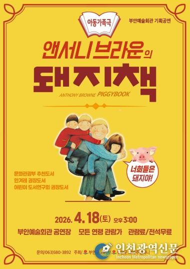[인천광역신문] 관리자 기자 | 부안군은 가족 뮤지컬 ‘돼지책’을 오는 4월 18일 오후 3시 부안예술회관 공연장에서 공연한다고 밝혔다.