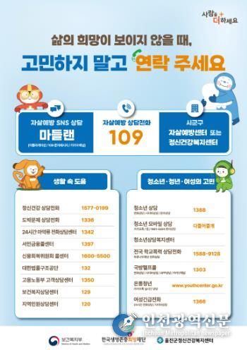 한편 우울감 등으로 전문가의 도움이 필요한 경우 자살예방상담전화 109 또는 정신건강위기 상담전화를 통해 24시간 상담을 받을 수 있다.