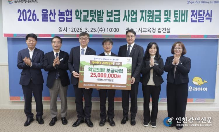[인천광역신문] 관리자 기자 | 울산광역시교육청은 25일 울산 농협에서 2,500만 원 상당의 학교 텃밭 운영학교 지원금과 퇴비를 지원받았다.