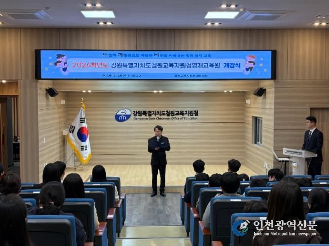 [인천광역신문] 관리자 기자 | 강원특별자치도철원교육지원청은 3월 25일 오후 3시 30분, 철원교육지원청 3층 강당에서 학생과 학부모, 지도교사 등 100여 명이 참석한 가운데 ‘2026학년도 강원특별자치도철원교육지원청영재교육원 개강식’을 개최했다.