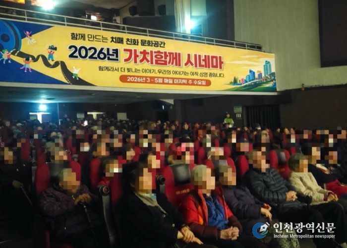 [인천광역신문] 관리자 기자 | 인천 동구는 지난 25일 치매 환자와 가족, 지역주민이 함께 즐길 수 있는 ‘가치함께 시네마’를 인천 미림극장에서 상영했다고 밝혔다.