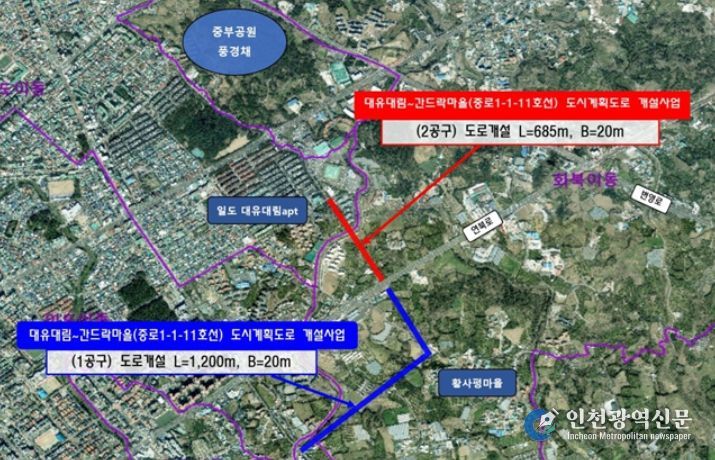 대유대림~간드락마을 도시계획도로 2공구는 일도 대유대림 아파트에서 연북로까지 이어지는 연장 685m, 폭 20m의 왕복 4차선 도로로, 1986년 도시계획시설로 결정된 이후 장기간 미집행 상태로 남아 있던 구간이다.