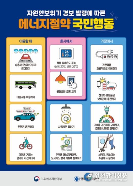 [인천광역신문] 관리자 기자 | 기후에너지환경부는 3월 26일 12시경 전국 12개 도시(서울, 부산, 대구, 인천, 광주, 대전, 세종, 수원, 춘천, 전주, 창원, 제주)에서 동시다발적으로 에너지절약 거리 캠페인을 벌인다고 밝혔다.