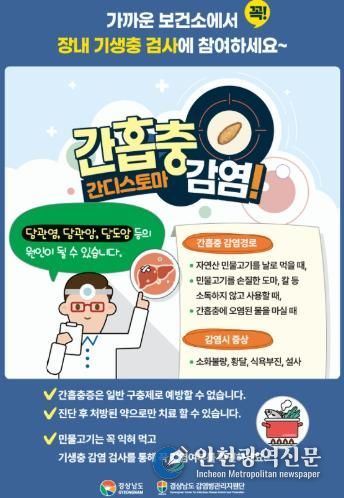 [인천광역신문] 관리자 기자 | 합천군보건소는 장내기생충 질환 퇴치를 위해 4월 6일부터 8일까지 3일간 지역주민 600여 명을 대상으로 장내기생충 무료 검사를 실시한다.
