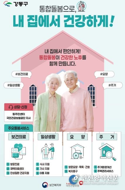 [인천광역신문] 관리자 기자 | 서울 강동구는 3월 27일부터 '돌봄통합지원법' 시행에 따라 돌봄이 필요한 주민이 살던 곳에서 계속 생활할 수 있도록 의료·요양·돌봄 서비스를 연계해 지원하는 ‘의료·요양 통합돌봄’ 본사업을 시작한다고 밝혔다.