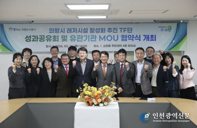 [인천광역신문] 관리자 기자 | 의왕도시공사는 3월 26일 ‘레저시설 활성화 추진 TF단’ 최종 보고회를 개최하고, 지역 내 주요 레저·관광 기관들과 함께 ‘의왕시 레저·관광 활성화를 위한 다자간 업무협약(MOU)’을 체결했다고 밝혔다.