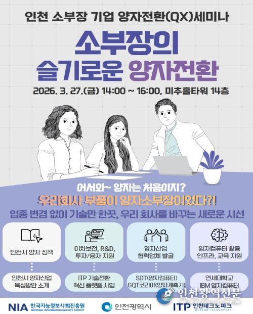 [인천광역신문] 관리자 기자 | 인천광역시는 3월 27일 송도 미추홀타워에서 지역 소재·부품·장비(소부장) 기업을 대상으로 '양자전환(QX) 세미나'를 열고, 양자기술 기반 산업 적용과 기업 간 협력 네트워크 구축 방안을 모색했다.