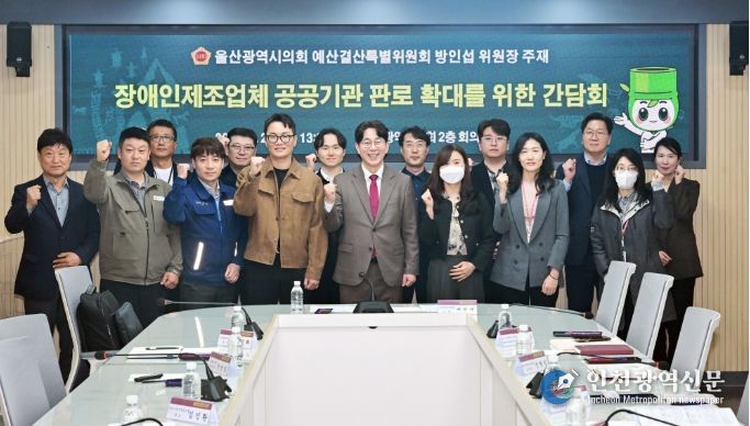 [인천광역신문] 관리자 기자 | 방인섭 울산광역시의회 의원은 27일 오후 시의회 회의실에서 ‘장애인 제조업체 공공기관 판로 확대를 위한 간담회’를 열고 울산시와 울산시교육청 등 공공기관의 장애인 표준사업장 생산품 구매 활성화 방안을 논의했다.