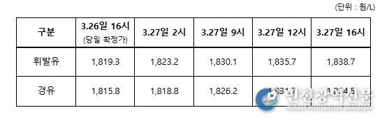 [인천광역신문] 관리자 기자 | 정부는 3월 27일 00시부터 정유사 출고물량에 대해 2차 석유 최고가격을 시행했다.