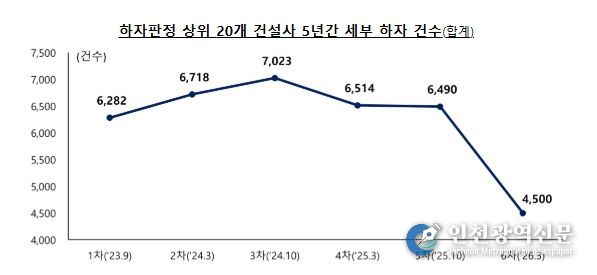 [인천광역신문] 관리자 기자 | 국토교통부는 하자심사·분쟁조정위원회에 신청된 공동주택 하자 건수 및 처리 현황과 ’26년 상반기(6차) 하자 판정 결과 상위 건설사 현황을 공개한다.