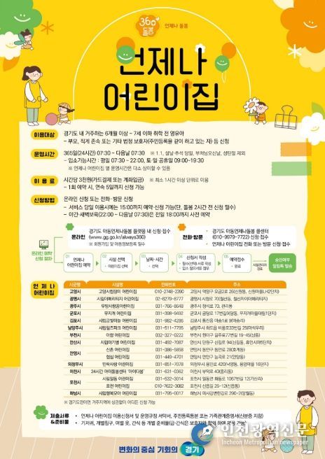 [인천광역신문] 관리자 기자 | 경기도가 양육가정의 긴급 돌봄 공백 해소를 위해 운영 중인 ‘언제나 어린이집’ 서비스에 오는 4월 1일부터 온라인 신청 체계를 도입한다.