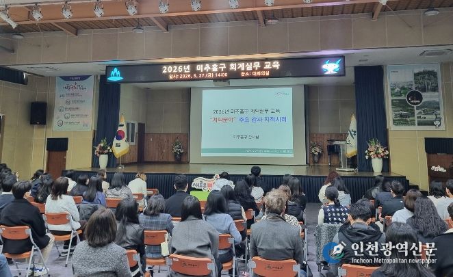 [인천광역신문] 관리자 기자 | 인천 미추홀구는 지난 27일 구청 대회의실에서 회계담당자 및 공사감독관 등 100여 명을 대상으로 ‘계약 분야 주요 감사 지적 사례 교육’을 실시했다고 밝혔다.