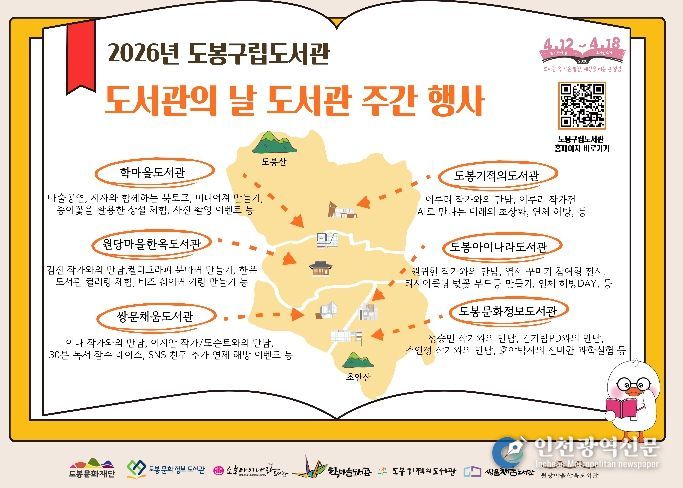[인천광역신문] 관리자 기자 | 서울 도봉구가 도봉문화재단 도봉구립도서관에서 도서관의 날(4월 12일)과 도서관 주간(4월 12~18일)을 맞아 다양한 독서문화 행사를 진행한다.