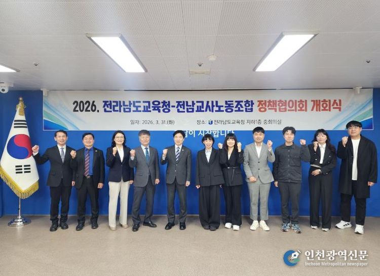 [인천광역신문] 관리자 기자 | 전라남도교육청과 전남교사노동조합은 3월 31일 청사 중회의실에서 ‘2026년 정책협의회 개회식’을 갖고 교육 현안에 대한 해법 모색에 나섰다.