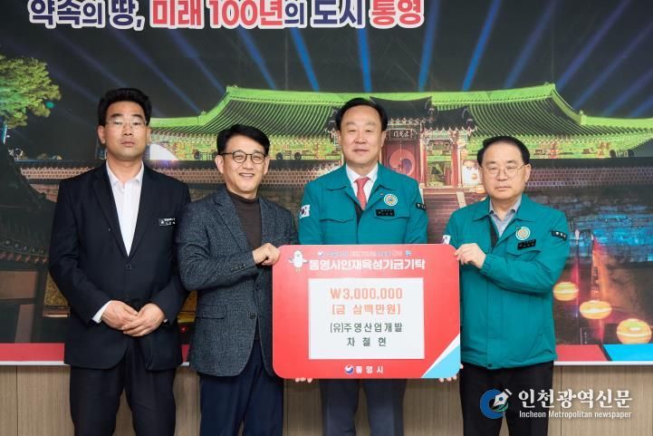 한편, (유)주영산업개발은 이전에도 통영시에 인재육성기금 5천만 원을 기탁한 바 있다.
