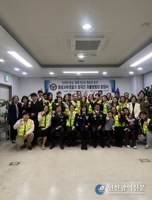 [인천광역신문] 관리자 기자 | 화성특례시는 3월 31일 화성서부경찰서에서 서부지역 치안 협력 강화를 위한 외국인 자율방범대 발대식을 개최했다고 밝혔다. 이번 행사는 화성서부경찰서 주관으로 추진됐으며, 서부권 외국인 주민의 지역사회 참여를 확대하고 민·관·경 협력 기반의 범죄 예방 체계를 공고히 하기 위해 마련됐다.