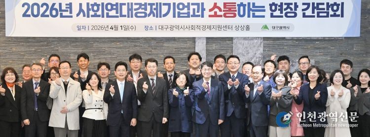 [인천광역신문] 관리자 기자 | 대구광역시는 국정과제인 ‘사회연대경제 성장 촉진’을 가속화하고 현장의 목소리를 시정에 반영하기 위해 4월 1일 오후 3시 40분, 대구사회적경제지원센터에서 김정기 대구광역시장 권한대행 주재로 ‘사회연대경제기업 대표들과의 소통 간담회’를 개최했다.