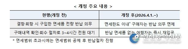 [인천광역신문] 관리자 기자 | 4월 1일부터 천재지변, 기체 결함 등 불가피한 사유로 항공기가 회항하거나 결항할 경우, 면세품 회수를 위해 여행객이 공항에서 장시간 대기해야 했던 불편이 사라진다.