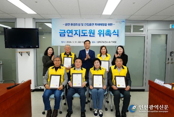 [인천광역신문] 관리자 기자 | 서울 성북구가 금연환경 조성과 간접흡연 피해 예방을 위해 지난 31일 신규 금연지도원 위촉식을 열고 본격적인 활동에 들어갔다.