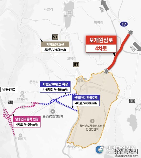 [인천광역신문] 관리자 기자 | 용인특례시 처인구 원삼면 국도 17호선 가재월사거리와 용인 반도체 클러스터 일반산업단지를 잇는 핵심 진입도로 ‘보개원삼로’ 전 구간 통행이 가능해졌다.