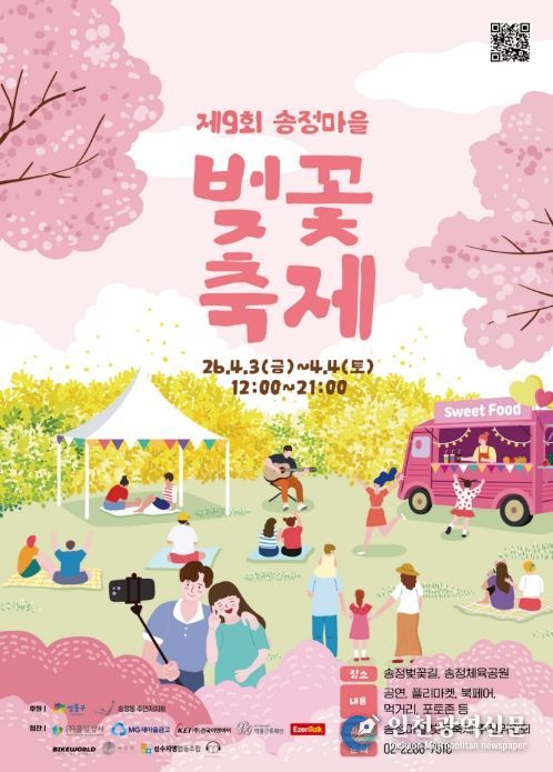 [인천광역신문] 관리자 기자 | 서울 성동구는 오는 4월 3일과 4일 이틀간, 대표적인 벚꽃 명소인 송정 제방길에서 ‘제9회 송정마을 벚꽃축제’가 개최된다고 밝혔다.