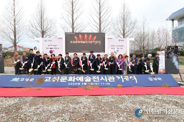 [인천광역신문] 관리자 기자 | 고성군과 무학그룹은 4월 1일, 고성읍 기월리 147-5일원에서 고성문화예술전시관 기공식을 성대히 개최하며 전시관 건립의 본격적인 시작을 알렸다.