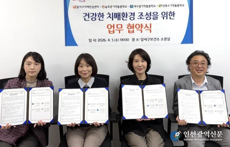 [인천광역신문] 관리자 기자 | 대구 달서구는 지난 1일 늘푸른기억돌봄학교, 대구샘기억돌봄학교, 상록수기억돌봄학교와 업무협약을 체결하고, 인지저하 및 경증치매 어르신을 위한 통합돌봄 체계 구축에 나선다.