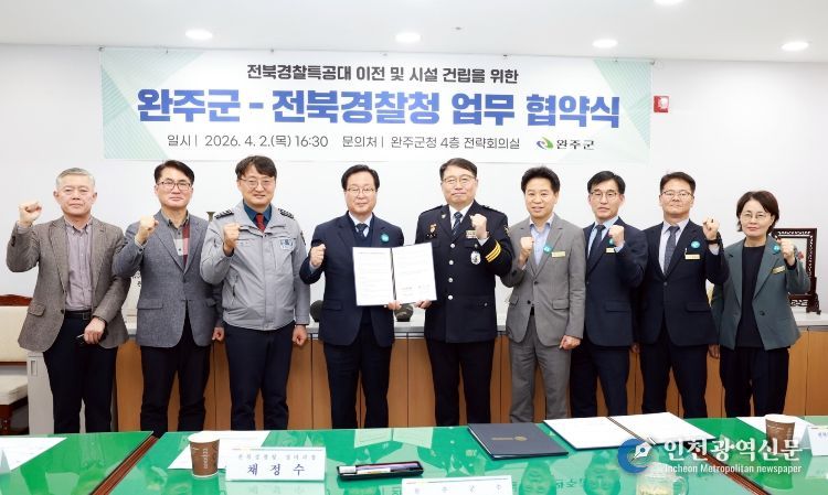 [인천광역신문] 관리자 기자 | 완주군과 전북경찰청은 2일 완주군청 전략회의실에서 경찰특공대 이전 및 청사 신축을 위한 업무협약(MOU)을 체결하고 전북 경찰특공대 이전 사업을 본격적으로 추진하기로 했다.
