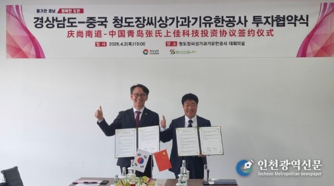 경남도는 2일 중국 산둥성 칭다오시에 위치한 청도장씨상가과기유한공사(이하 장씨상가) 본사에서 경남 도내 자동차 부품 제조시설 투자를 위한 양해각서(MOU)를 체결했다고 밝혔다.