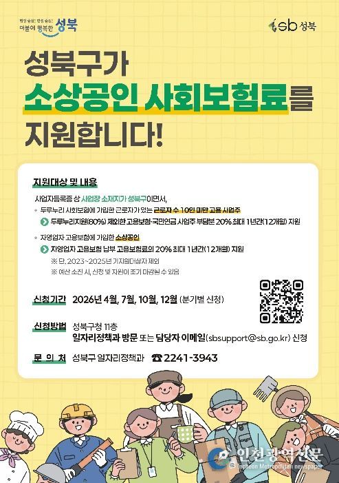 [인천광역신문] 최예준 기자 | 서울 성북구가 4월 13일부터 17일까지 2026년 '성북구 소상공인 사회보험료 지원사업' 1분기 신청 접수를 진행한다.