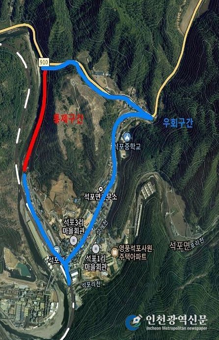 [인천광역신문] 최예준 기자 | 봉화군은 석포면 석포리 일원 불미고개 입구부터 하수처리장구간 (군도20호)을 오는 4월 8일부터 8월 15일까지(약 130일간) 낙석방지망 설치 등 정비사업을 위해 전면 통제 할예정이다.