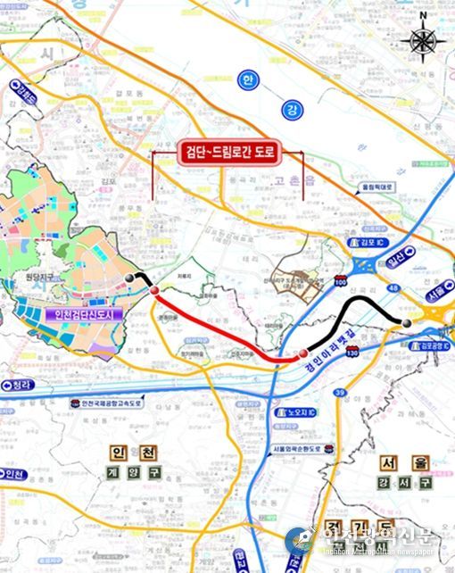 [인천광역신문] 최예준 기자 | 인천광역시와 한국토지주택공사(LH)는 검단지역 광역교통개선을 위해 추진해 온 검단∼드림로간 연결도로를 4월8일 오후 2시에 개통한다고 밝혔다.