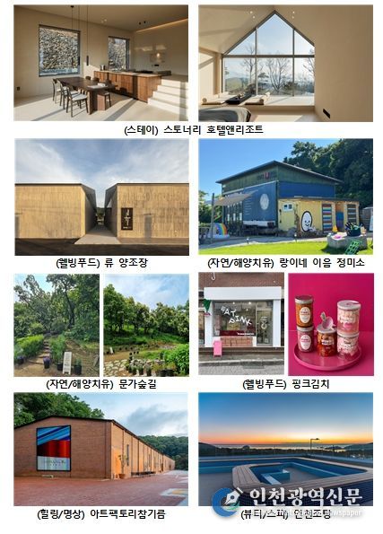 올해 신규 웰니스 관광지로는 △류양조장(강화, 웰빙푸드) △스토너리 호텔앤리조트(강화, 스테이) △랑이네 이음 정미소(강화, 자연·해양치유) △㈜농업회사법인 문가숲길(남동구, 자연·해양치유) △아트팩토리참기름 강화(강화, 힐링·명상) 등 5곳이 선정됐다.