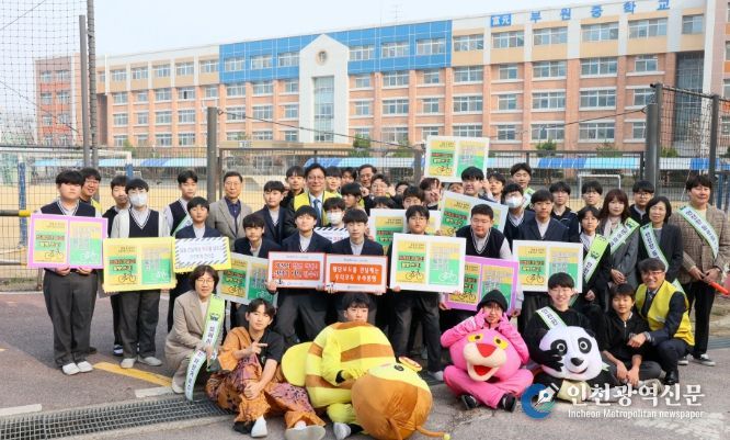 [인천광역신문] 최예준 기자 | 인천광역시교육청은 최근 청소년 사이에서 확산되고 있는 ‘픽시자전거(무제동 자전거)’ 안전사고 위험을 예방하기 위하여, 3일 부원중학교에서 등굣길 교통안전 캠페인을 실시했다.