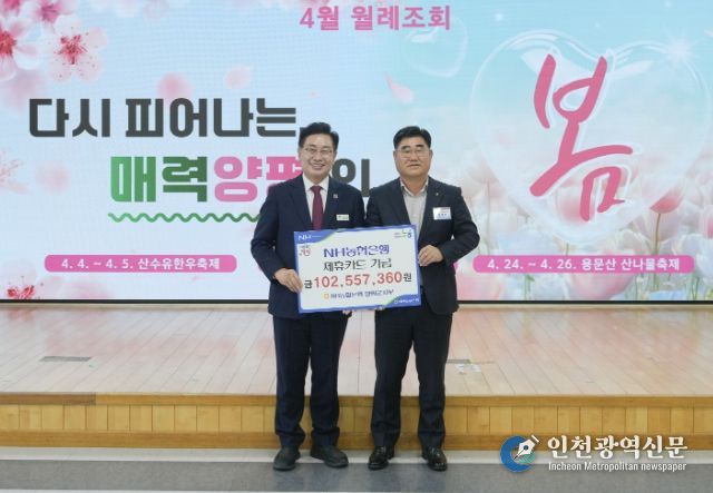 [인천광역신문] 최예준 기자 | 양평군은 지난 4월 1일 NH농협은행 양평군지부로부터 제휴카드 적립기금 1억 256만 원을 기금 수입금으로 전달받았다고 밝혔다.