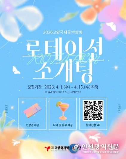 [인천광역신문] 최예준 기자 | 재단법인 고양국제박람회재단은 2026고양국제꽃박람회 기간 중 청춘 남녀를 위해 참여형 프로그램 ‘로테이션 소개팅’을 기획했다.