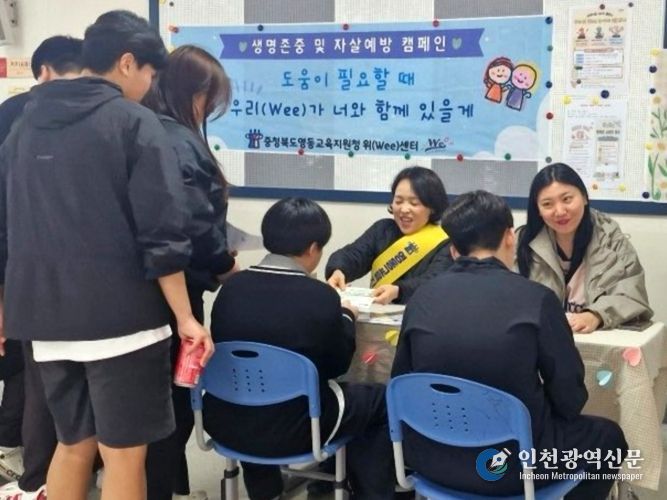 [인천광역신문] 최예준 기자 | 영동교육지원청 위(Wee)센터는 3일, 새너울중학교에서 전교생이 참여하는 체험형 ‘상반기 생명지킴 및 생명존중문화 조성 캠페인’을 운영했다.