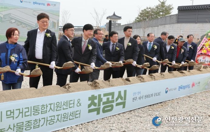 전주시는 3일 도도동 건립 부지에서 윤동욱 전주시장 권한대행 부시장과 전주시의원, 농업인 단체 및 유관기관 관계자, 지역주민 등 등 200여 명이 참석한 가운데 먹거리 선순환 체계 구축의 핵심 거점이 될 ‘전주시 먹거리통합지원센터’와 ‘전주시 농산물종합가공지원센터’의 공동 착공식을 가졌다.
