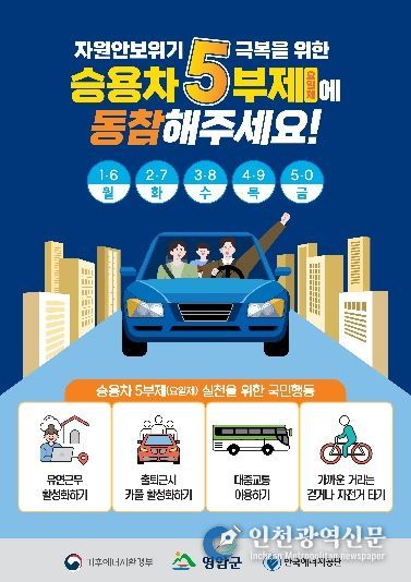 군은 지난 3월 26일부터 군청 출입 직원을 대상으로 승용차 요일제(5부제)를 시행하고 있으며, 3월 31일부터는 유관기관과 사회단체까지 참여를 확대해 절약 실천을 추진하고 있다.