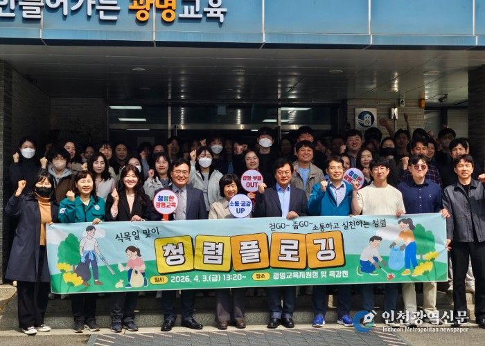[인천광역신문] 최예준 기자 | 경기도광명교육지원청은 4월 3일 식목일을 앞두고 교육지원청 교직원들과 함께 깨끗한 지역사회 조성과 실천하는 청렴 문화 확산을 위해 ‘청렴 플로깅’을 실시했다.