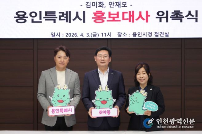 [인천광역신문] 최예준 기자 | 용인특례시는 3일 용인 시민인 방송인 김미화씨와 배우 안재모씨를 홍보대사로 위촉했다.